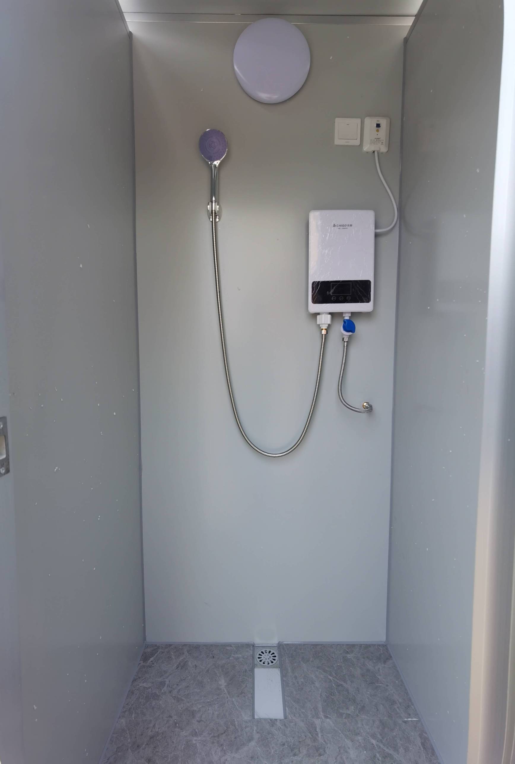 產(chǎn)品配置:志高牌即熱型熱水器(功率:5500W)、花灑節(jié)能燈、漏電保護(hù)器、開關(guān)、地漏。