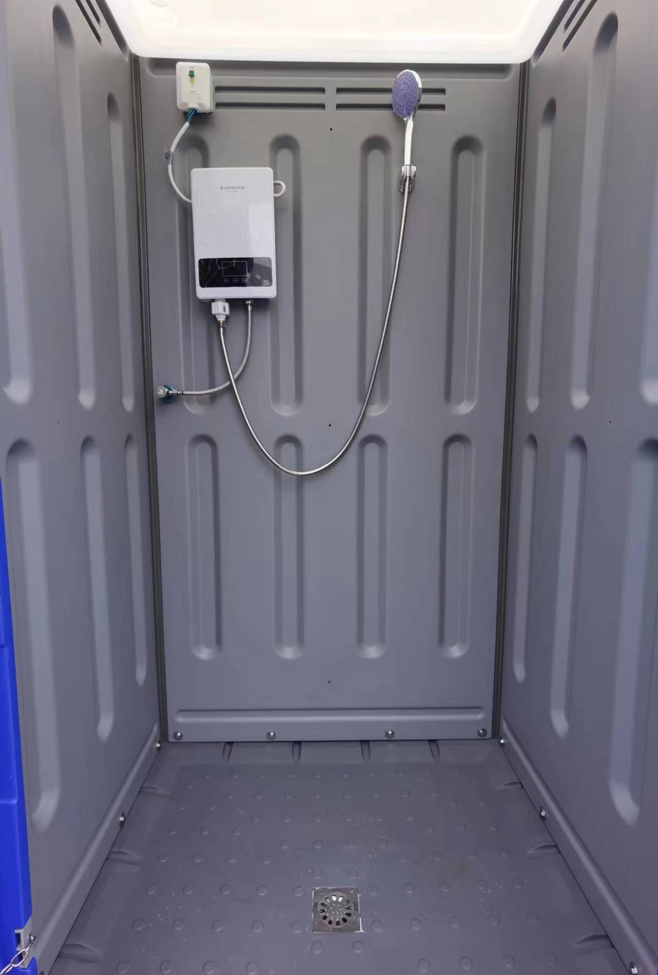 內(nèi)設附件:即熱型熱水器(功率:5500W)、衣帽掛鉤、化妝鏡子、標識、門鎖、花灑、防磨損可換叉車底座、吊車掛鉤、漏電保護器、地漏等。